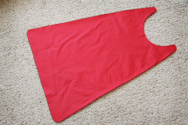 Like this cape for my youngest son. I followed the cutting tutorial to get the right shape from the picture above at Moms Rising, but used black knit so there was no sewing involved with that part. I did however create the CUTEST felt logo with a lightning bolt and his initial out of felt that I sewed on the back! I love it! I added some cuffs from this tutorial at The Train To Crazy, and made two cute super hero masks with lightning bolts that I will have to show you when I make my DIY super hero outfit tutorial. I hope he loves it. It is too cute and we can't let the girls have all the fun with their princess dress ups!